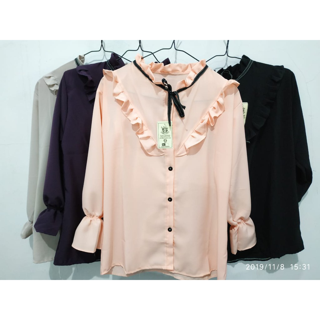 Jual 8fa Blouse Velvet Polos Blus Korea Lengan Panjang Putih Atasan Baju Kerja Wanita Tali Leher Indonesia Shopee Indonesia